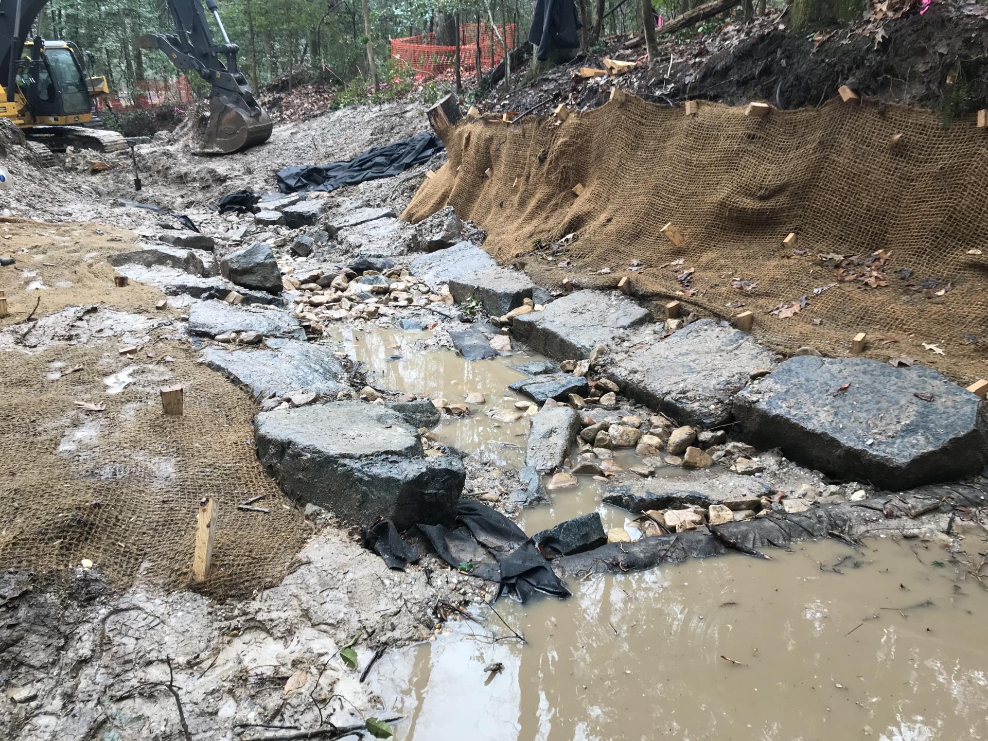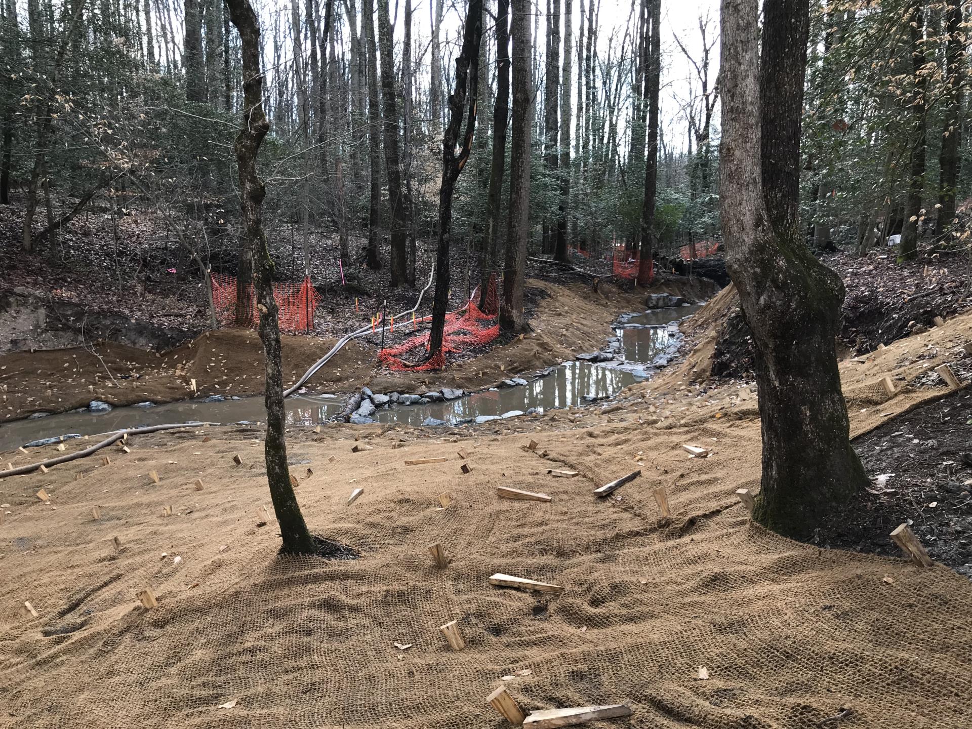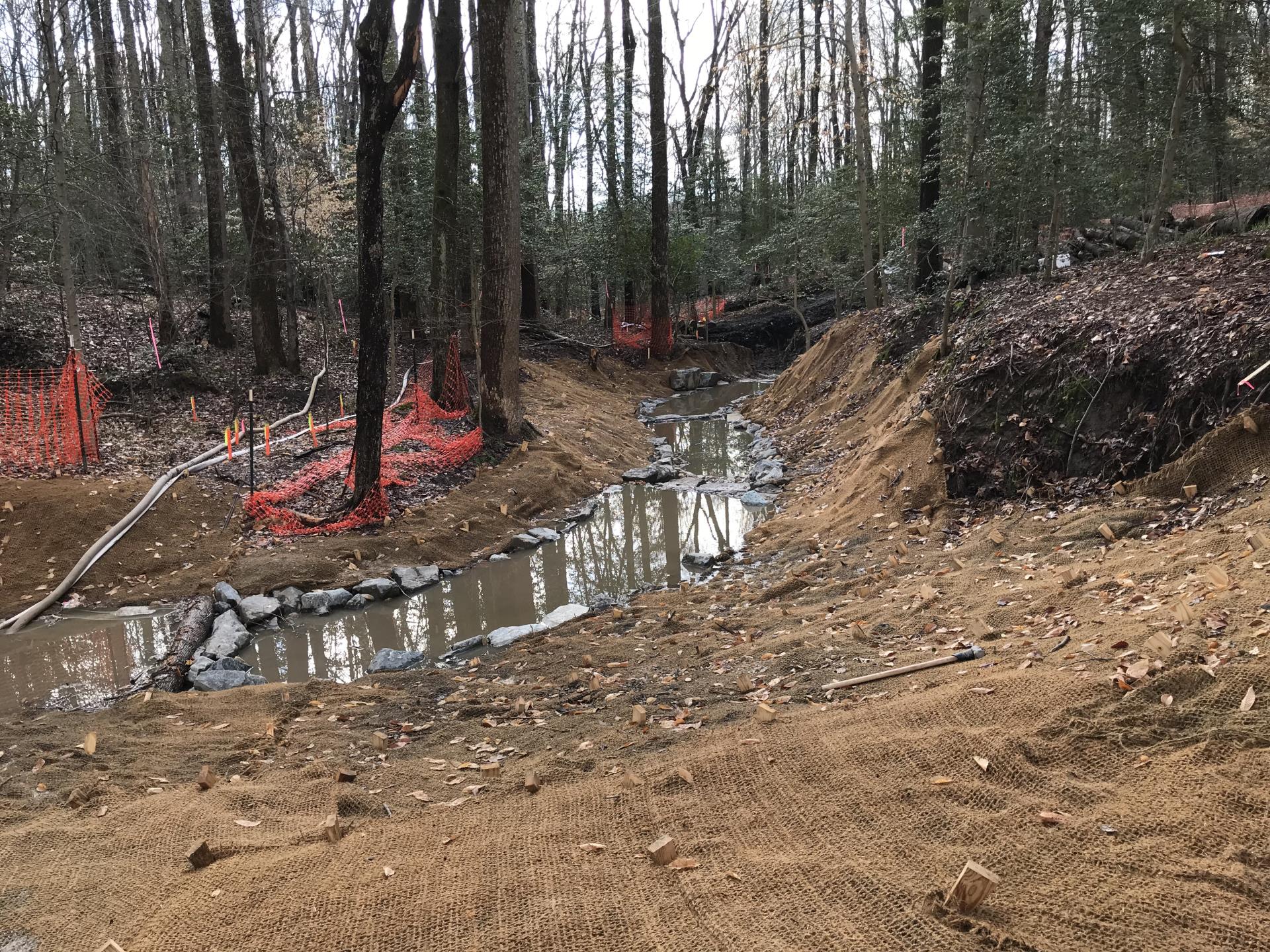 Project Description: Provide stream stabilization in an eroding channel, decrease sediment loads to stormwater management pond and reconnect the stream with riparian wetlands where feasible to maximize water quality.